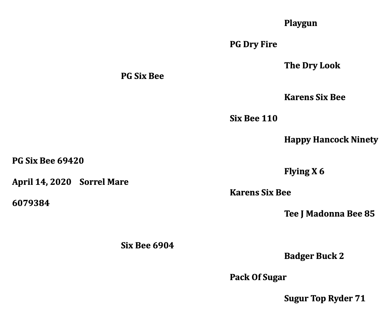 Sorrel Mare. Foaled April 14, 2020. Out of Six Bee 6904