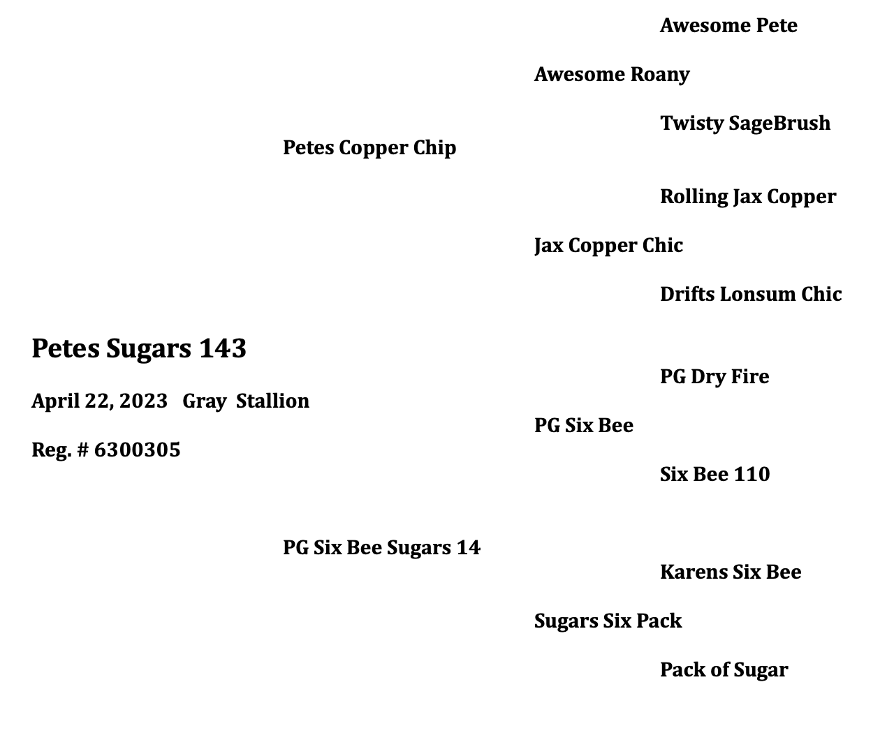 Gray Stallion. Foaled April 22, 2023. Out of PG Six Bee Sugars 14.