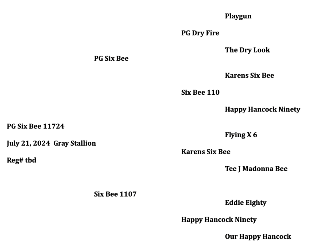 Gray Stallion. Foaled July 21, 2024. By PG Six Bee and out of Six Bee 1107.
