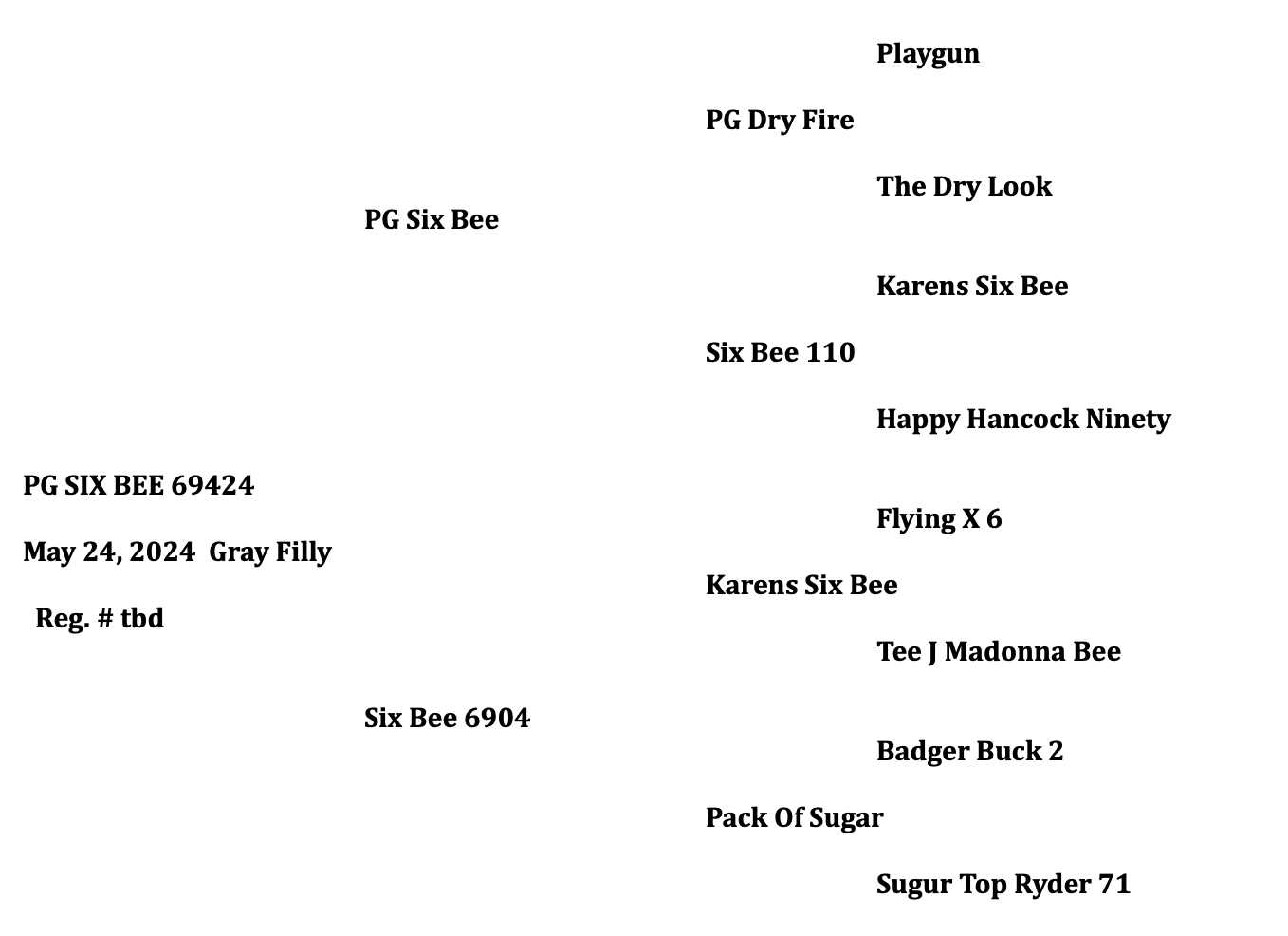 Gray Filly. Foaled May 24, 2024. By PG Six Bee and out of Six Bee 6904.