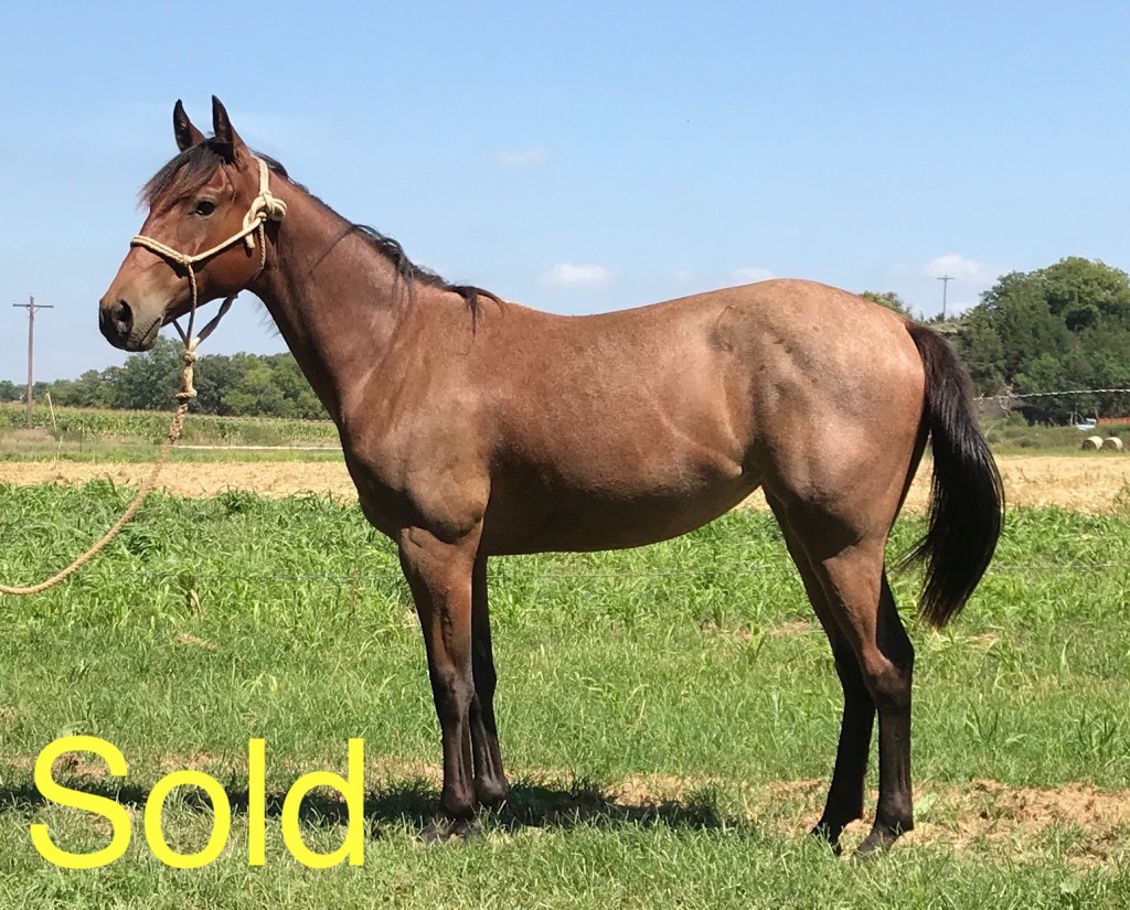 This is the first offspring out of PG Six Bee 69514 and the first foal resulting from this cross of PG Six Bee’s daughters on Happy Eddie Six Bee. It seems to be working. She’s a nice friendly mare. Really gentle. Going to be big too. Registered grey by AQHA rules. She can be changed to roan at no cost, just pictures.